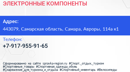 ЭЛЕКТРОННЫЕ КОМПОНЕНТЫ по адресу 443079, Самарская область, Самара, Авроры, 114а к1 в дальнейшем Организация, размещена в следующих категориях: