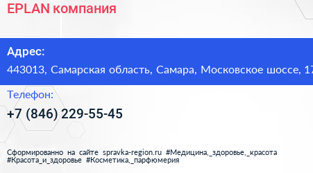 EPLAN, компания по адресу 443013, Самарская область, Самара, Московское шоссе, 17 в дальнейшем Организация, размещена в следующих категориях: