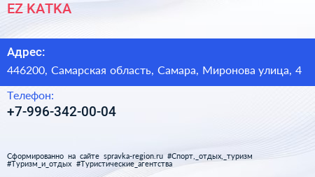 EZ KATKA по адресу 446200, Самарская область, Самара, Миронова улица, 4 в дальнейшем Организация, размещена в следующих категориях: