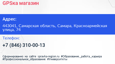 GPSка, магазин по адресу 443041, Самарская область, Самара, Красноармейская улица, 74 в дальнейшем Организация, размещена в следующих категориях: