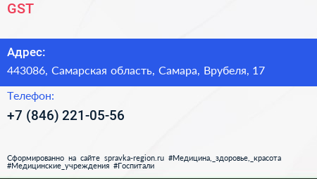 GST по адресу 443086, Самарская область, Самара, Врубеля, 17 в дальнейшем Организация, размещена в следующих категориях: