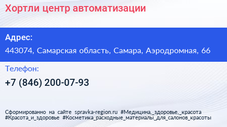 Хортли, центр автоматизации по адресу 443074, Самарская область, Самара, Аэродромная, 66 в дальнейшем Организация, размещена в следующих категориях: