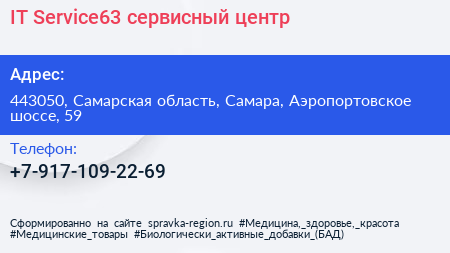 IT-Service63, сервисный центр по адресу 443050, Самарская область, Самара, Аэропортовское шоссе, 59 в дальнейшем Организация, размещена в следующих категориях:
