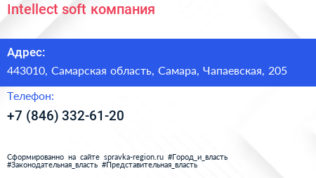 Intellect-soft, компания по адресу 443010, Самарская область, Самара, Чапаевская, 205 в дальнейшем Организация, размещена в следующих категориях: