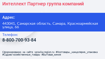 Интеллект-Партнер, группа компаний по адресу 443041, Самарская область, Самара, Красноармейская улица, 66 в дальнейшем Организация, размещена в следующих категориях: