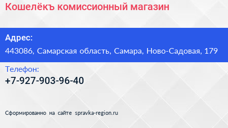 Кошелёкъ, комиссионный магазин по адресу 443086, Самарская область, Самара, Ново-Садовая, 179 в дальнейшем Организация, размещена в следующих категориях: