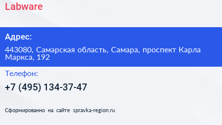 Labware по адресу 443080, Самарская область, Самара, проспект Карла Маркса, 192 в дальнейшем Организация, размещена в следующих категориях: