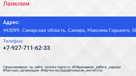 Ланкомм по адресу 443099, Самарская область, Самара, Максима Горького, 58 в дальнейшем Организация, размещена в следующих категориях: