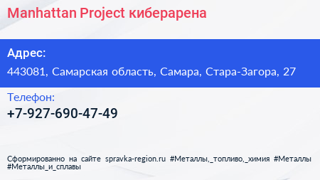 Manhattan Project, киберарена по адресу 443081, Самарская область, Самара, Стара-Загора, 27 в дальнейшем Организация, размещена в следующих категориях: