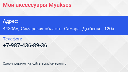 Мои аксессуары-Myakses по адресу 443066, Самарская область, Самара, Дыбенко, 120а в дальнейшем Организация, размещена в следующих категориях: