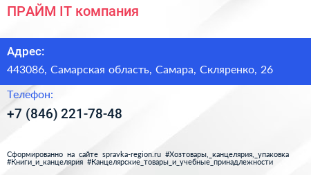 ПРАЙМ, IT-компания по адресу 443086, Самарская область, Самара, Скляренко, 26 в дальнейшем Организация, размещена в следующих категориях: