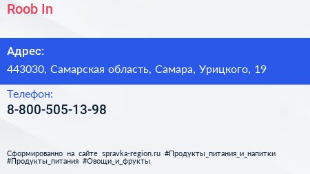 Roob. In по адресу 443030, Самарская область, Самара, Урицкого, 19 в дальнейшем Организация, размещена в следующих категориях: