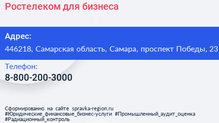 Ростелеком для бизнеса по адресу 446218, Самарская область, Самара, проспект Победы, 23 в дальнейшем Организация, размещена в следующих категориях: