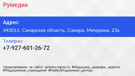 Румедиа по адресу 443013, Самарская область, Самара, Мичурина, 23а в дальнейшем Организация, размещена в следующих категориях: