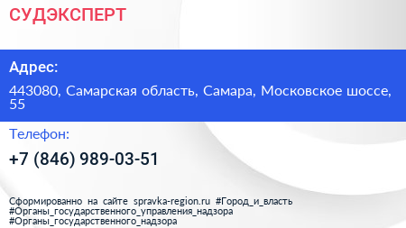 СУДЭКСПЕРТ по адресу 443080, Самарская область, Самара, Московское шоссе, 55 в дальнейшем Организация, размещена в следующих категориях: