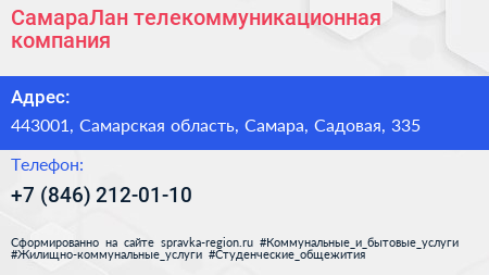 СамараЛан, телекоммуникационная компания по адресу 443001, Самарская область, Самара, Садовая, 335 в дальнейшем Организация, размещена в следующих категориях: