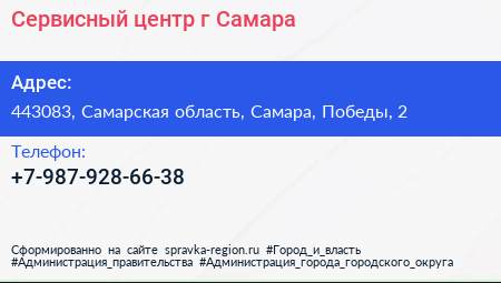 Сервисный центр, г. Самара по адресу 443083, Самарская область, Самара, Победы, 2 в дальнейшем Организация, размещена в следующих категориях:
