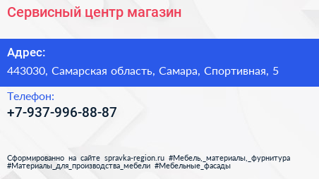 Сервисный центр-магазин по адресу 443030, Самарская область, Самара, Спортивная, 5 в дальнейшем Организация, размещена в следующих категориях: