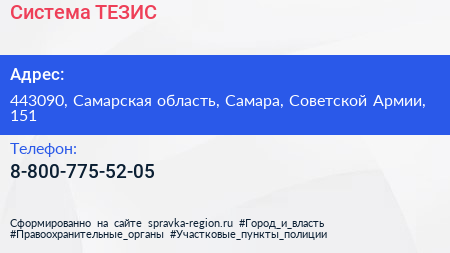Система ТЕЗИС по адресу 443090, Самарская область, Самара, Советской Армии, 151 в дальнейшем Организация, размещена в следующих категориях: