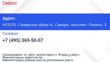 Смасс по адресу 443110, Самарская область, Самара, проспект Ленина, 1 в дальнейшем Организация, размещена в следующих категориях: