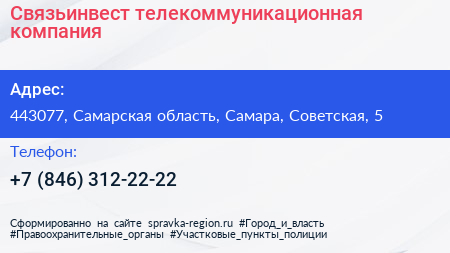 Связьинвест, телекоммуникационная компания по адресу 443077, Самарская область, Самара, Советская, 5 в дальнейшем Организация, размещена в следующих категориях:
