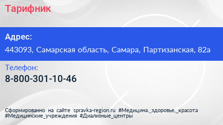 Тарифник по адресу 443093, Самарская область, Самара, Партизанская, 82а в дальнейшем Организация, размещена в следующих категориях: