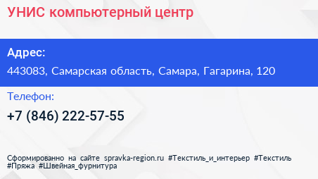 УНИС, компьютерный центр по адресу 443083, Самарская область, Самара, Гагарина, 120 в дальнейшем Организация, размещена в следующих категориях: