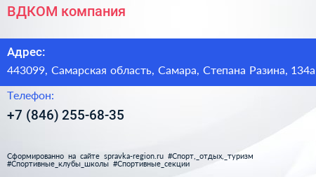 ВДКОМ, компания по адресу 443099, Самарская область, Самара, Степана Разина, 134а в дальнейшем Организация, размещена в следующих категориях: