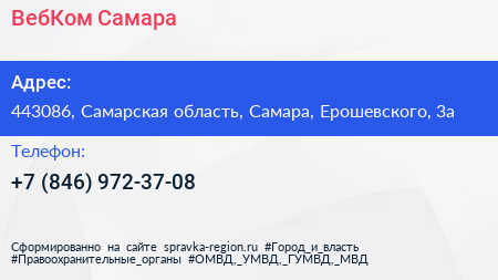 ВебКом-Самара по адресу 443086, Самарская область, Самара, Ерошевского, 3а в дальнейшем Организация, размещена в следующих категориях: