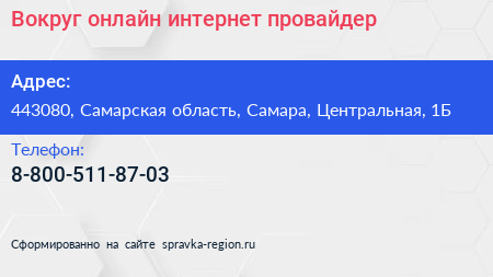Вокруг онлайн, интернет-провайдер по адресу 443080, Самарская область, Самара, Центральная, 1Б в дальнейшем Организация, размещена в следующих категориях: