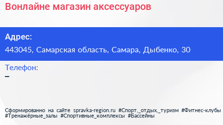 Вонлайне, магазин аксессуаров по адресу 443045, Самарская область, Самара, Дыбенко, 30 в дальнейшем Организация, размещена в следующих категориях: