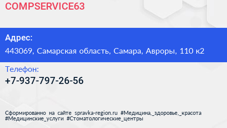 COMPSERVICE63 по адресу 443069, Самарская область, Самара, Авроры, 110 к2 в дальнейшем Организация, размещена в следующих категориях: