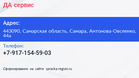 ДА-сервис по адресу 443090, Самарская область, Самара, Антонова-Овсеенко, 44а в дальнейшем Организация, размещена в следующих категориях: