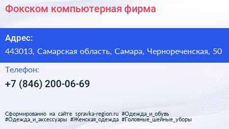 Фокском, компьютерная фирма по адресу 443013, Самарская область, Самара, Чернореченская, 50 в дальнейшем Организация, размещена в следующих категориях: