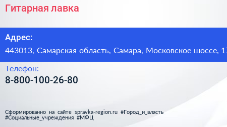 Гитарная лавка по адресу 443013, Самарская область, Самара, Московское шоссе, 17 в дальнейшем Организация, размещена в следующих категориях: