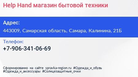 Help & Hand, магазин бытовой техники по адресу 443009, Самарская область, Самара, Калинина, 21Б в дальнейшем Организация, размещена в следующих категориях: