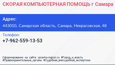 СКОРАЯ КОМПЬЮТЕРНАЯ ПОМОЩЬ, г. Самара по адресу 443010, Самарская область, Самара, Некрасовская, 48 в дальнейшем Организация, размещена в следующих категориях: