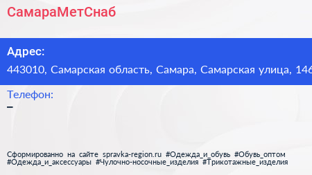 СамараМетСнаб по адресу 443010, Самарская область, Самара, Самарская улица, 146 в дальнейшем Организация, размещена в следующих категориях: