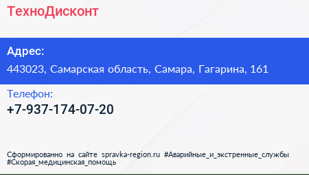 ТехноДисконт по адресу 443023, Самарская область, Самара, Гагарина, 161 в дальнейшем Организация, размещена в следующих категориях: