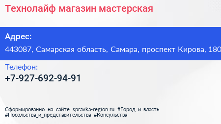 Технолайф, магазин-мастерская по адресу 443087, Самарская область, Самара, проспект Кирова, 180 в дальнейшем Организация, размещена в следующих категориях: