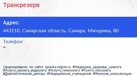 Трансрезерв по адресу 443110, Самарская область, Самара, Мичурина, 80 в дальнейшем Организация, размещена в следующих категориях: