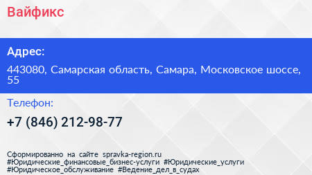 Вайфикс по адресу 443080, Самарская область, Самара, Московское шоссе, 55 в дальнейшем Организация, размещена в следующих категориях:
