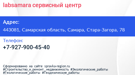 labsamara, сервисный центр по адресу 443081, Самарская область, Самара, Стара-Загора, 78 в дальнейшем Организация, размещена в следующих категориях:
