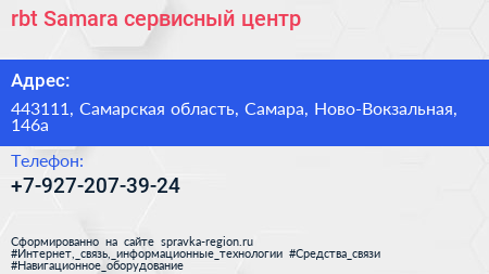 rbt-Samara, сервисный центр по адресу 443111, Самарская область, Самара, Ново-Вокзальная, 146а в дальнейшем Организация, размещена в следующих категориях: