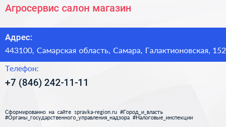 Агросервис, салон-магазин по адресу 443100, Самарская область, Самара, Галактионовская, 152 в дальнейшем Организация, размещена в следующих категориях: