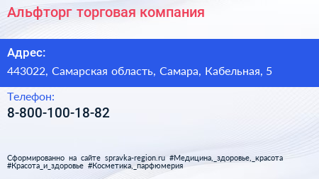 Альфторг, торговая компания по адресу 443022, Самарская область, Самара, Кабельная, 5 в дальнейшем Организация, размещена в следующих категориях:
