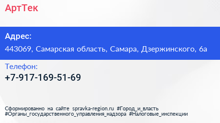 АртТек по адресу 443069, Самарская область, Самара, Дзержинского, 6а в дальнейшем Организация, размещена в следующих категориях: