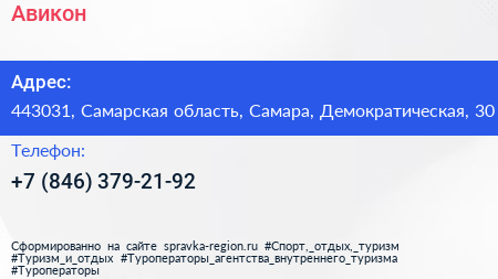 Авикон по адресу 443031, Самарская область, Самара, Демократическая, 30 в дальнейшем Организация, размещена в следующих категориях: