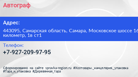 Автограф по адресу 443095, Самарская область, Самара, Московское шоссе 16 километр, 1в ст1 в дальнейшем Организация, размещена в следующих категориях: