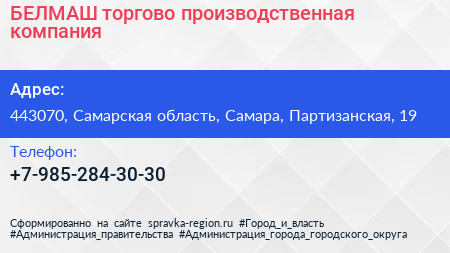 БЕЛМАШ, торгово-производственная компания по адресу 443070, Самарская область, Самара, Партизанская, 19 в дальнейшем Организация, размещена в следующих категориях: